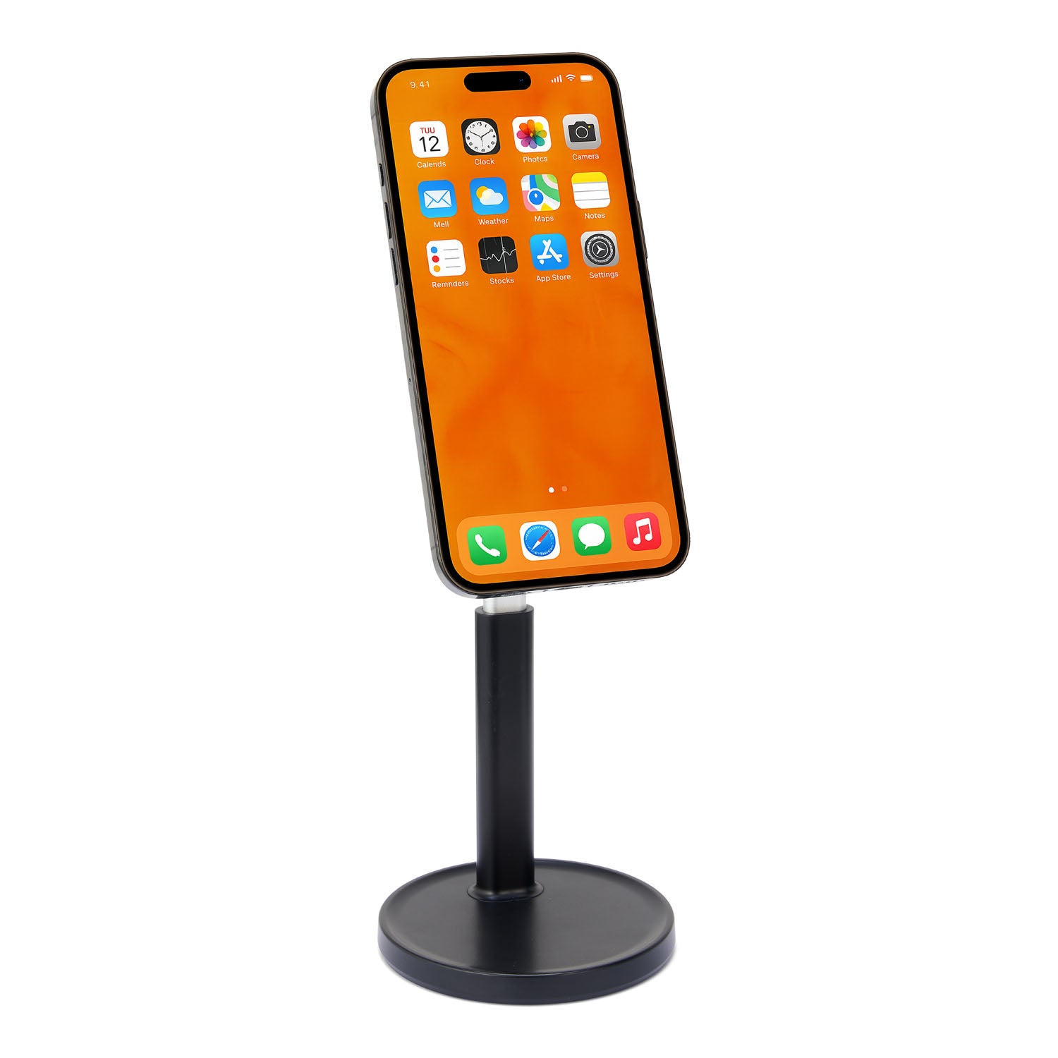 Absoluut. De slanke, goed uitgebalanceerde basis zorgt voor stabiliteit op diverse oppervlakken, zoals bureaus, nachtkastjes en werkplekken. Hij is ontworpen om stevig op zijn plaats te blijven en tegelijkertijd je telefoon veilig te ondersteunen.