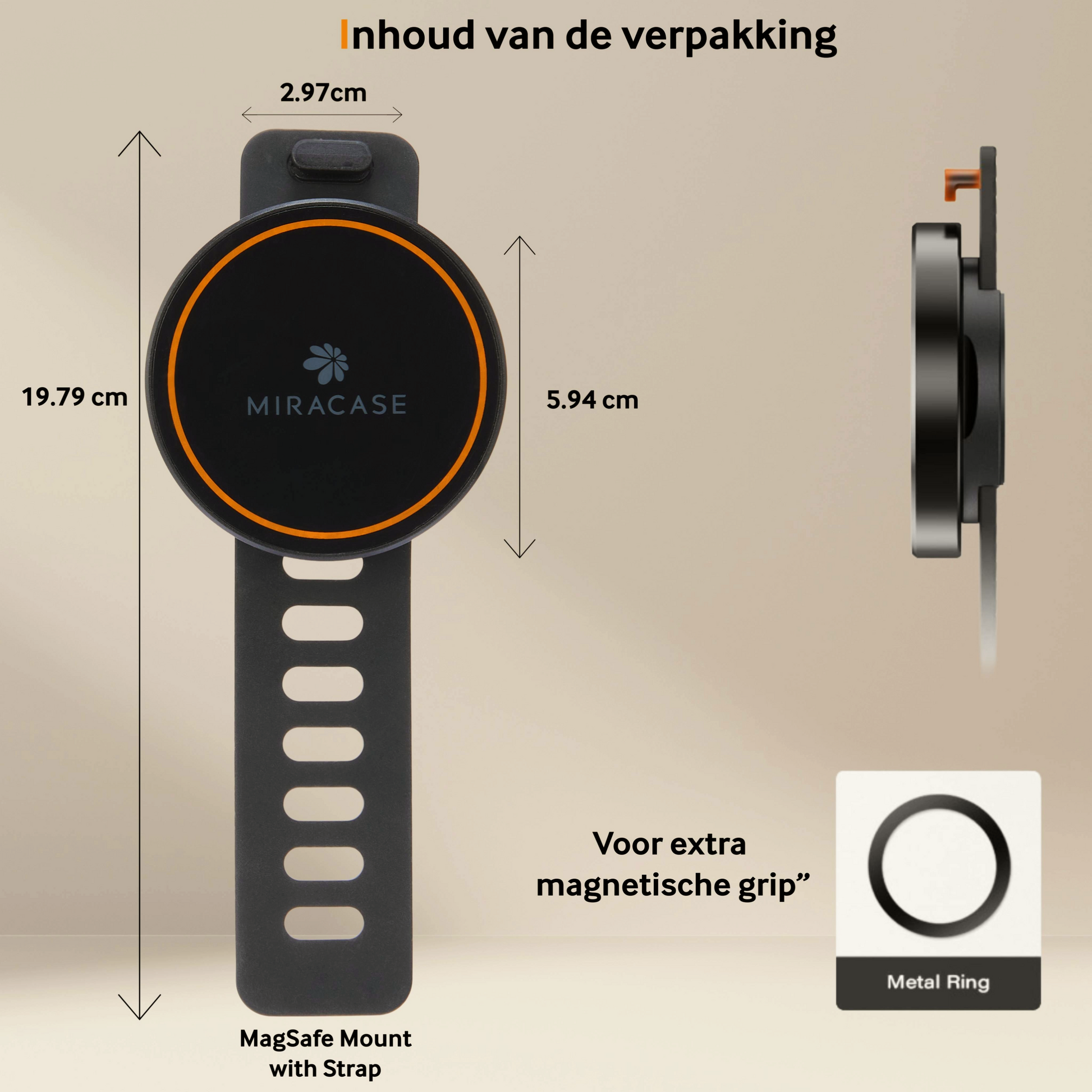 Ja! De mounts zijn MagSafe-ready voor iPhones en werken met vrijwel elk toestel via de meegeleverde magnetische ring.