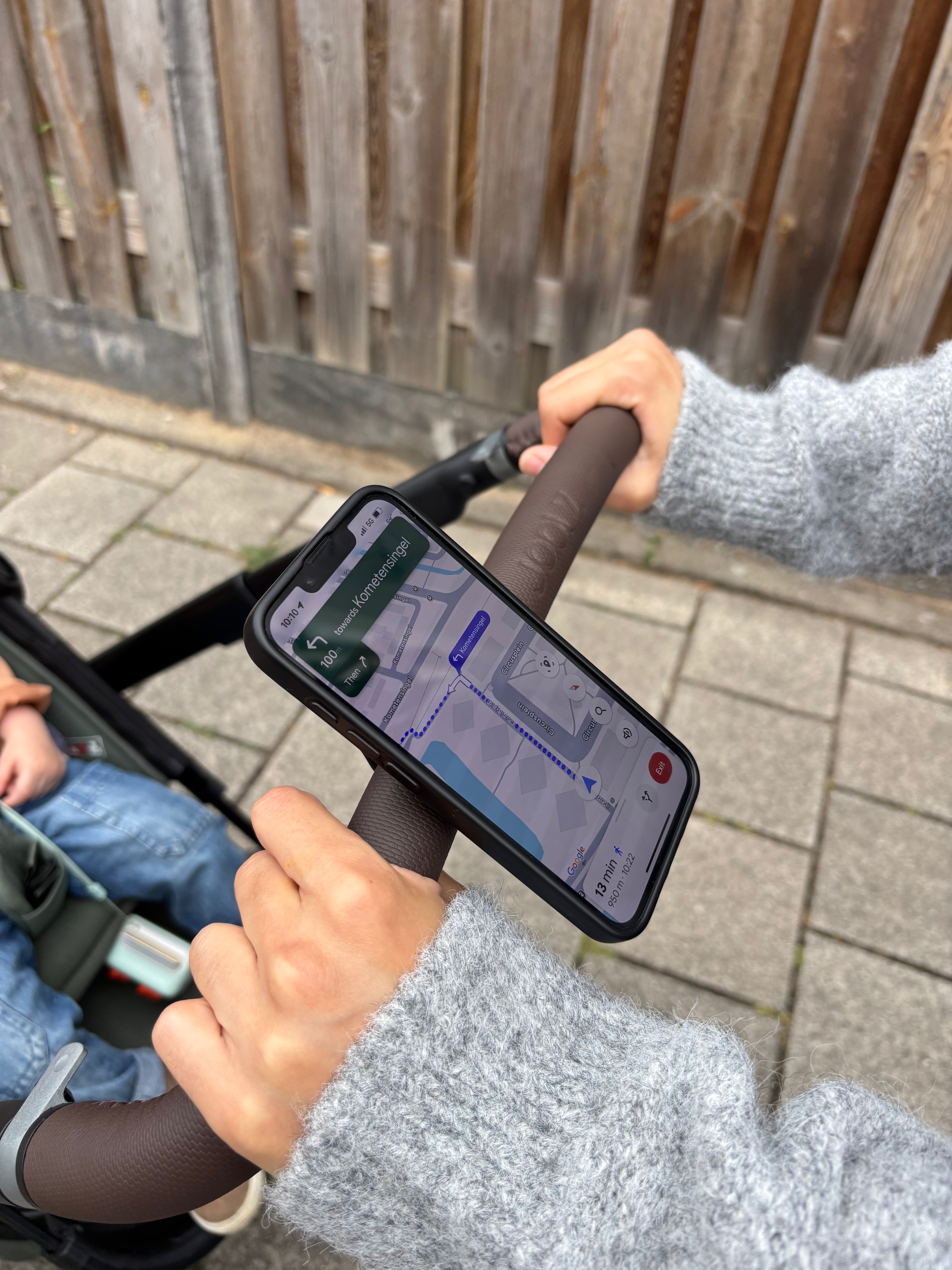 Snel met één hand te bedienen – klik de houder op een handvat en je telefoon er in één beweging op/af, in portret- of landschapsmodus.