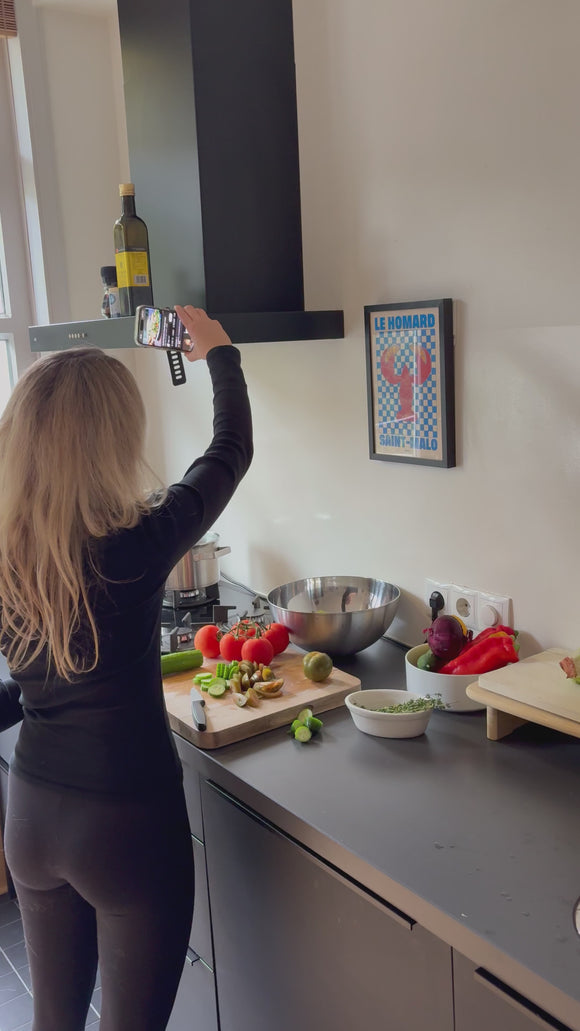 Klikt op elk magnetisch oppervlak – gebruik ’m op koelkast, afzuigkap, fitnessapparatuur of kluisjes voor handsfree koken, trainen en dagelijks gebruik.